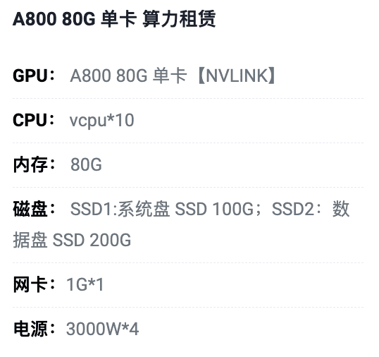 吉林A800-80G单卡租用价格