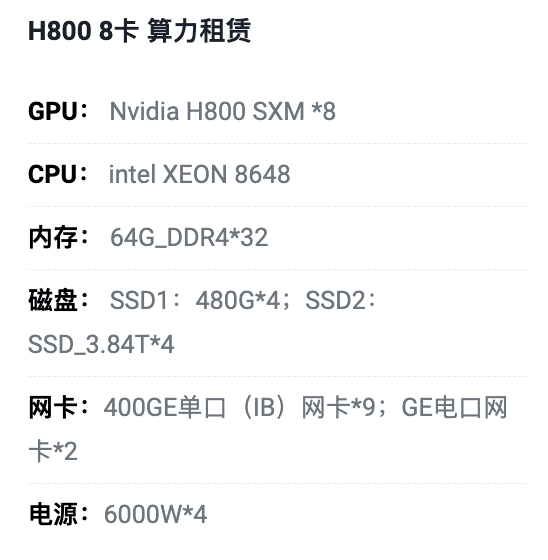 吉林H800八卡算力租用价格
